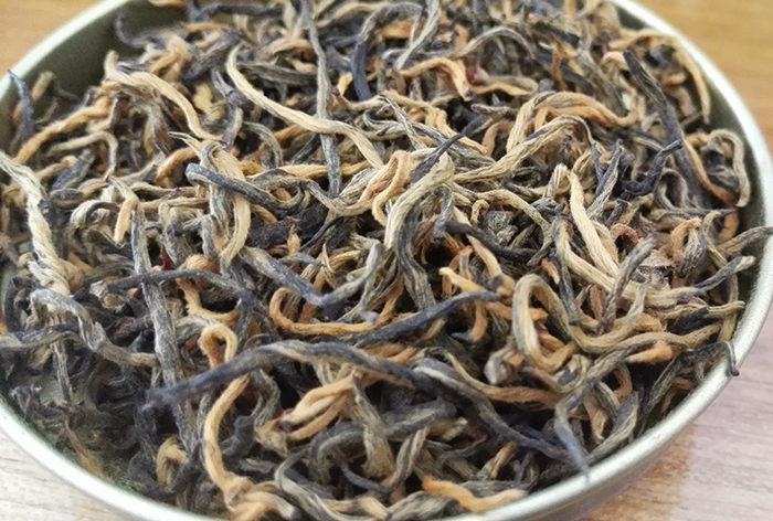 金丝红茶(滇红),原料选用云南大叶种春秋茶单芽鲜叶,按照老传统工艺精心制作而成。成品金黄油亮,冲泡以后红汤红叶,滋味浓郁,收敛性强,爽口。