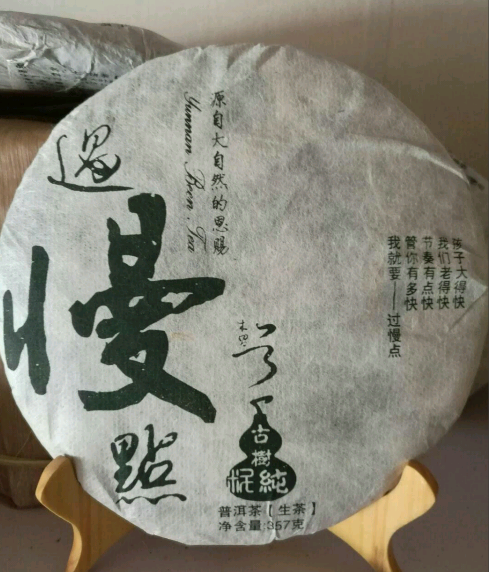 “过慢点”古树纯料饼茶,原料选用云南大叶种古树春茶鲜叶,按照传统工艺精心制作而成。成品条索肥壮显毫,高山古树气息浓郁,茶汤滋味饱满厚实,香气高扬持久。由于原料产地海拔1800-2000米左右,建议冲泡时候多投快出。原料2020年春季生产。